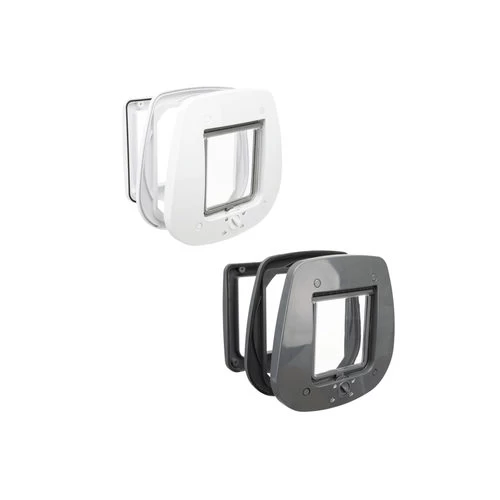 Trixie 4-Wege-Katzenklappe für Glas ist eine Katzenklappe mit einer durchsichtigen Klappe, die in ein einziges Glas eingesetzt wird.